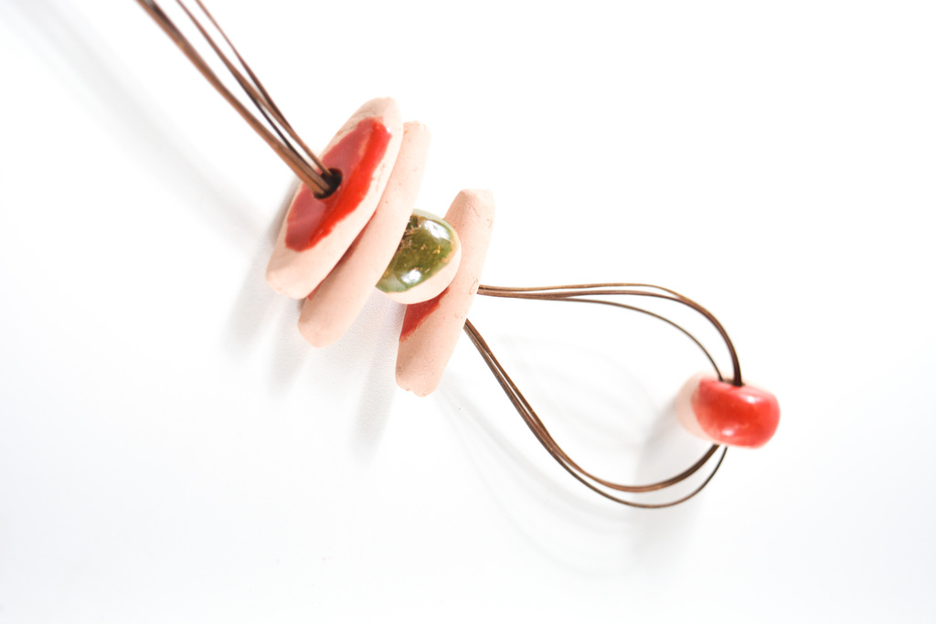 Colar de ceâmica e piaçava, criado pela artesã Sonia Costa, Salvador - BA.